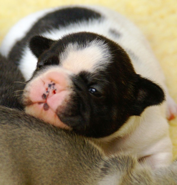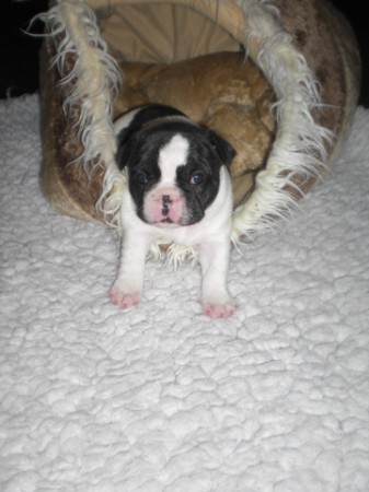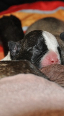 das einzige mädchen - eine schecken-hündin mit stolzem gewicht.